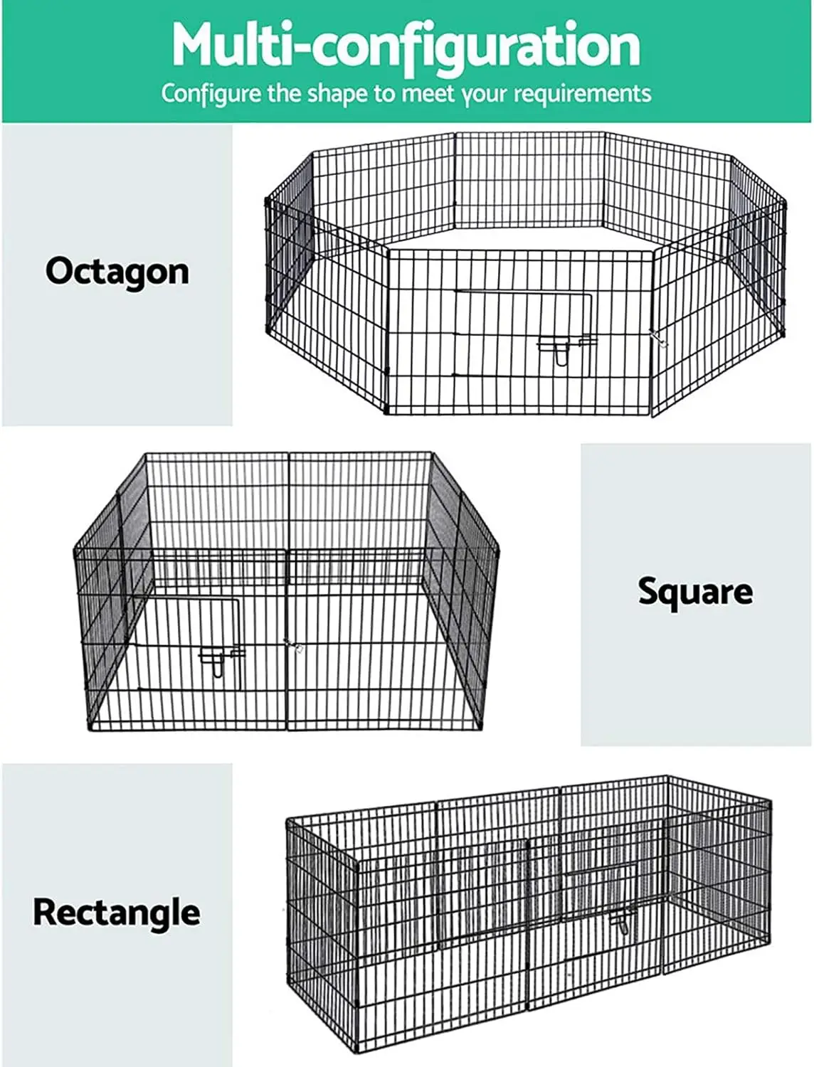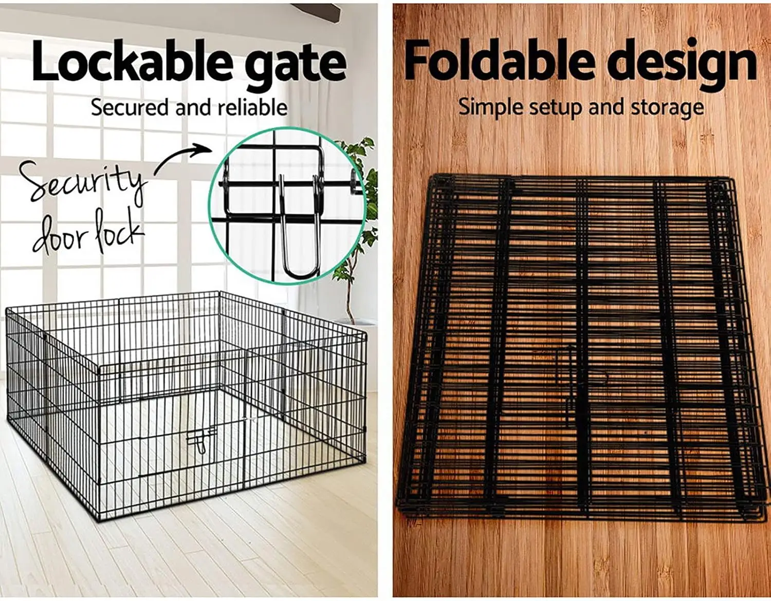 i.Pet 24″ 8 Panel Pet Dog Playpen. Play Pen, Playpens, Fence Crate. Ideal Puppy Exercise Enclosure for New Puppies: Pets’ Barrier Portable Outdoor and Indoor Run with Gate. Lightweight and easy to assemble for moving around from room to room or for verandas/patios and outside on the lawn. Shape the design to suit the space. Compact and collapsible for traveling or visiting friends. Also, great enclosure for breeders’ litters