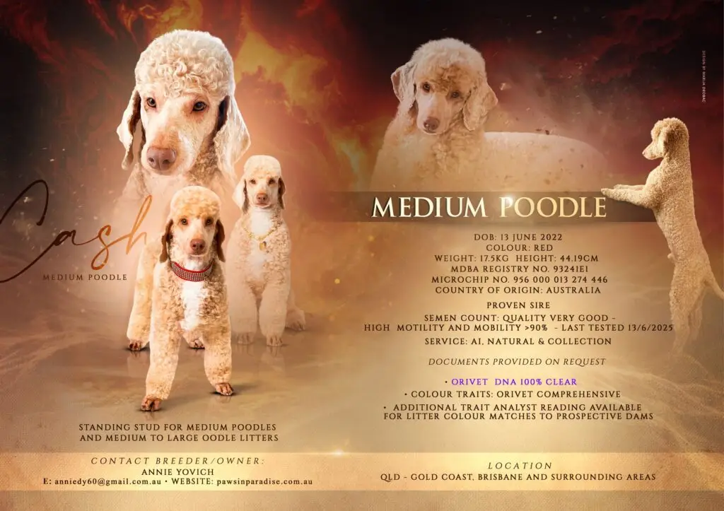 | Orivet Cenetic DNA | MDBA Registration Poodle Medium N0. 93241e1 | FCI – International Kennel Standards for Mediums | Facebook Page |